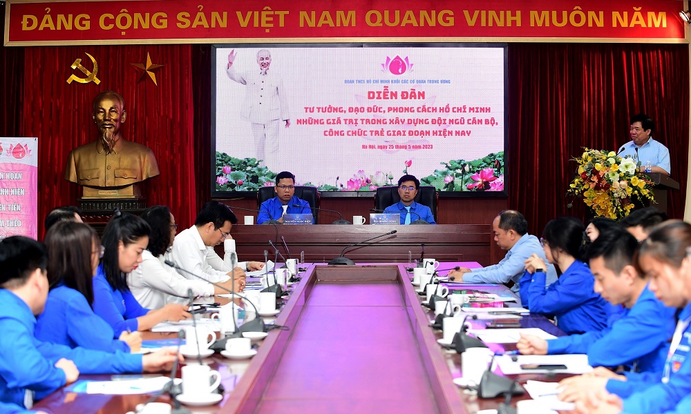 ĐTN: Trong khuôn khổ Liên hoan Thanh niên tiên tiến làm theo lời Bác năm 2023, sáng 25/5, Ban Thường vụ Đoàn Khối các Cơ quan Trung ương tổ chức diễn đàn “Tư tưởng, đạo đức, phong cách Hồ Chí Minh - Những giá trị trong xây dựng đội ngũ cán bộ, công chức trẻ giai đoạn hiện nay”.