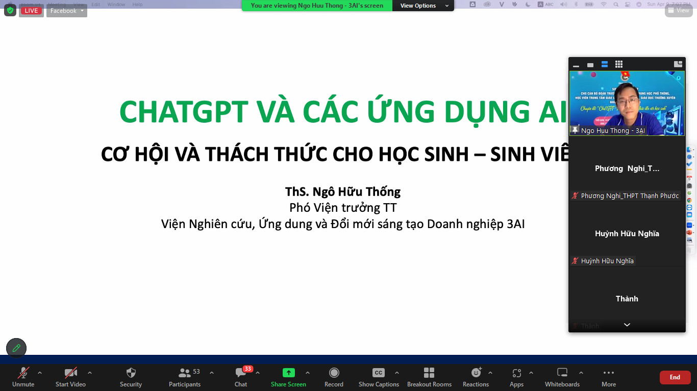 ĐTN: Tối 09/4/2023, Ban Thường vụ Tỉnh đoàn tổ chức sinh hoạt định kỳ tháng 4 dành cho 63 đồng chí là Bí thư Đoàn trường THPT, cán bộ đoàn Trung tâm Giáo dục nghề nghiệp – Giáo dục thường xuyên với chủ đề “ChatGPT – Thời cơ và Thách thức đối với học sinh”.