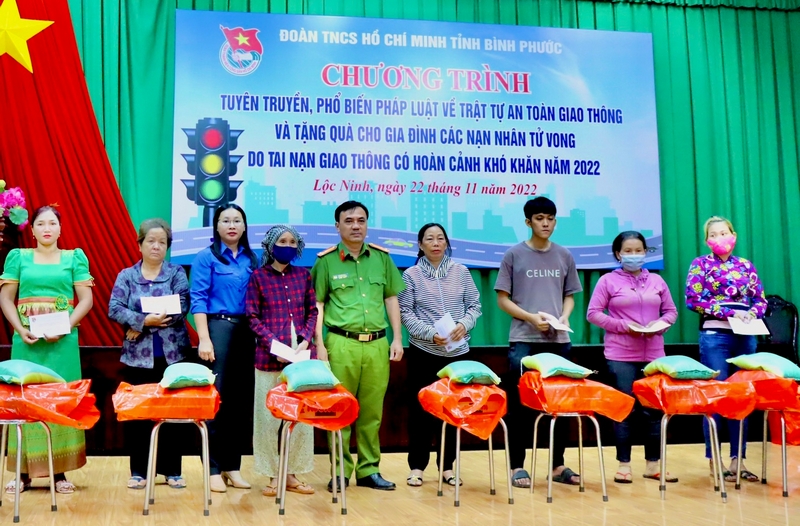 ĐTN: Chiều 22/11, Tỉnh Đoàn Bình Phước tổ chức chương trình tuyên truyền, phổ biến pháp luật an toàn giao thông và tặng quà cho gia đình các nạn nhân tử vong do tai nạn giao thông năm 2022 trên địa bàn huyện Lộc Ninh.