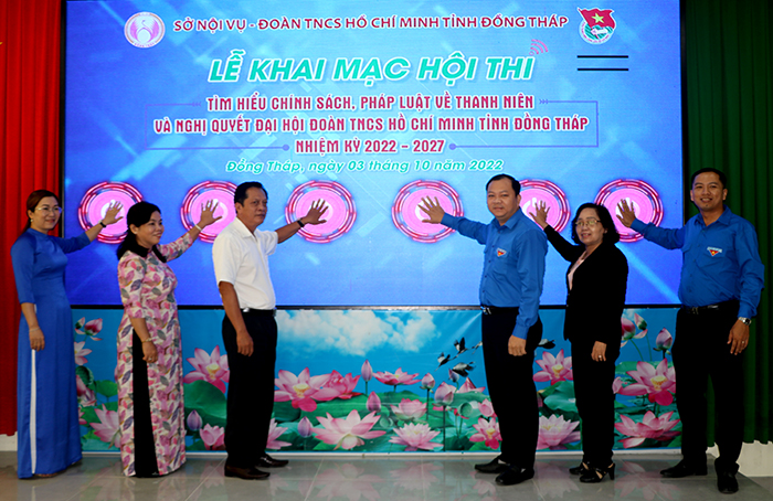 ĐTN: Sáng 03/10, tại Hội trường Trung tâm Dịch vụ việc làm Tỉnh, Ban Thường vụ Tỉnh đoàn phối hợp với Sở Nội vụ tỉnh Đồng Tháp tổ chức lễ khai mạc hội thi trực tuyến tìm hiểu chính sách, pháp luật về thanh niên và Nghị quyết Đại hội Đoàn TNCS Hồ Chí Minh tỉnh Đồng Tháp lần thứ XI, nhiệm kỳ 2022 - 2027.