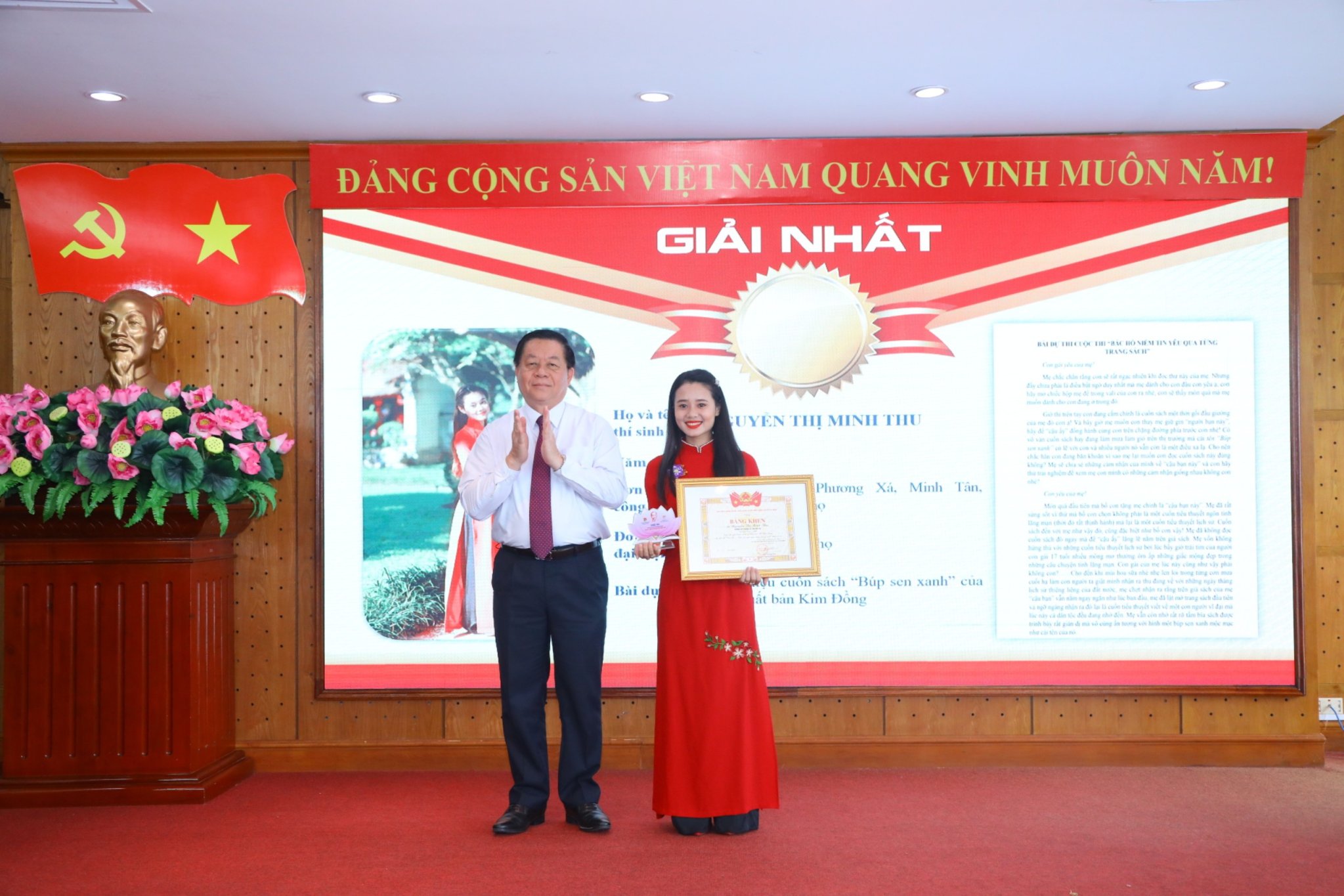 ĐTN: Vượt qua hơn 2.000 tác phẩm dự thi, cô giáo Nguyễn Thị Minh Thu (giáo viên trường THPT Phương Xá, Minh Tân, Cẩm Khê, Phú Thọ) đã xuất sắc giành giải Nhất cuộc thi Giới thiệu sách về Chủ tịch Hồ Chí Minh với chủ đề: “Bác Hồ - Niềm tin yêu qua từng trang sách” năm 2022.