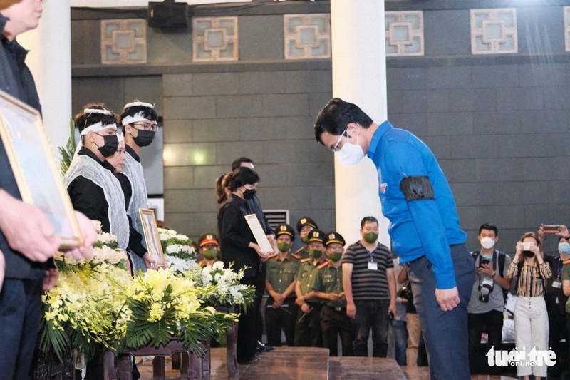 ĐTN: Chiều nay 5.8, lễ tang 3 liệt sĩ hy sinh trong lúc làm nhiệm vụ chữa cháy được tổ chức trọng thể tại Nhà tang lễ Quốc gia, số 5 Trần Thánh Tông, Hà Nội. Đồng chí Bùi Quang Huy, Ủy viên dự khuyết T.Ư Đảng, Bí thư thường trực T.Ư Đoàn và đoàn T.Ư Đoàn đã đến viếng 3 liệt sĩ.