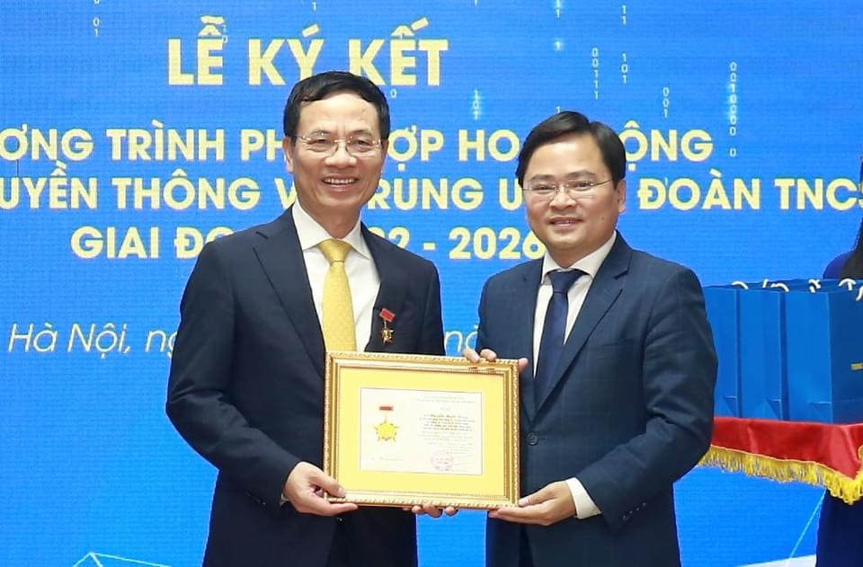 ĐTN: Chiều 30/3, trong khuôn khổ lễ ký kết chương trình phối hợp giai đoạn 2022 - 2026 giữa Bộ Thông tin và truyền thông và T.Ư Đoàn TNCS Hồ Chí Minh đã diễn ra lễ trao tặng kỷ niệm chương "Vì thế hệ trẻ" và kỷ niệm chương "Vì sự nghiệp thông tin và truyền thông".