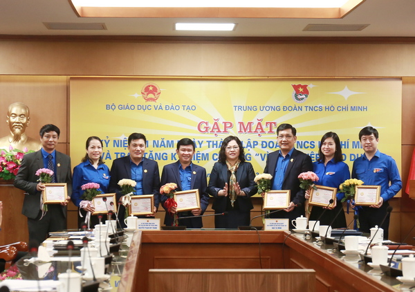 ĐTN: Ngày 30/3, Bộ GD&ĐT tổ chức buổi gặp mặt nhân kỷ niệm 91 năm thành lập Đoàn TNCS Hồ Chí Minh và trao tặng Kỷ niệm chương “Vì sự nghiệp giáo dục” cho 10 cán bộ thuộc các ban, đơn vị T.Ư Đoàn.