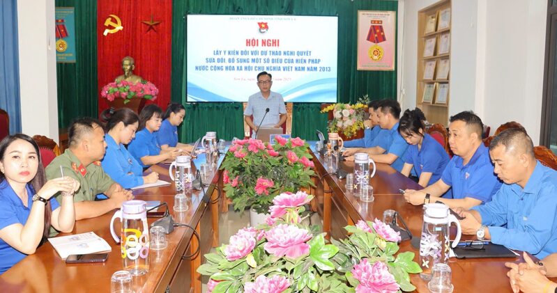ĐTN: Ngày 14/5/2025, Ban Thường vụ Tỉnh đoàn Sơn La tổ chức Hội nghị lấy ý kiến đối với Dự thảo Nghị quyết sửa đổi, bổ sung một số điều của Hiến pháp năm 2013 theo hình thức trực tiếp kết hợp trực tuyến tới điểm cầu các huyện, thị đoàn, thành đoàn, đoàn trực thuộc trên địa bàn tỉnh.