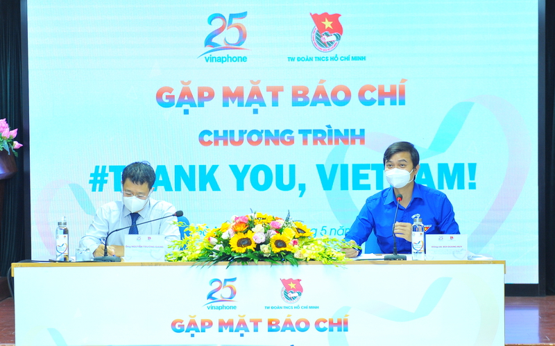 ĐTN: Ngày 27/5, Trung ương Đoàn phối hợp với VNPT VinaPhone gặp mặt báo chí công bố và phát động chương trình #Thank you, VietNam! năm 2021. Chương trình triển khai thiết thực tạo nguồn quỹ 5 tỷ đồng để xây dựng 60 căn nhà nhân ái cho các gia đình có hoàn cảnh khó khăn.