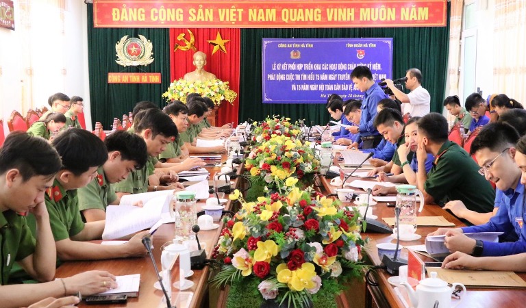 Web.ĐTN: Chiều 28/5, Tỉnh đoàn và Công an tỉnh Hà Tĩnh tổ chức lễ ký kết phối hợp triển khai các hoạt động kỷ niệm, phát động Cuộc thi tìm hiểu 75 năm Ngày truyền thống lực lượng Công an nhân dân (19/8/1945-2020), 15 năm Ngày hội toàn dân bảo vệ ANTQ (19/8/2005/19/8/2020).