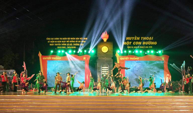 Web.ĐTN: Chương trình nghệ thuật ‘Huyền thoại một con đường’ đã tái hiện lại ký ức một thời hoa lửa rất hào hùng vẻ vang nhưng cũng thắm đậm máu xương và nước mắt của quân và dân ta.