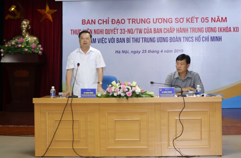 Web.ĐTN: Chiều 25/4, tại Hà Nội, Ban chỉ đạo Trung ương sơ kết 5 năm thực hiện Nghị quyết 33-NQ/TW của Ban Chấp hành Trung ương (khoá XI) đã có buổi làm việc với Ban Bí thư Trung ương Đoàn về kết quả thực hiện Nghị quyết của Đoàn TNCS Hồ Chí Minh.