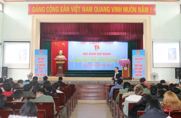 Web.ĐTN: Sáng 04/01, tại Hội trường A1 trường Đại học Hải Phòng, Thành đoàn đăng cai tổ chức Hội nghị tập huấn tuyên truyền, phổ biến chính sách, pháp luật về Bảo hiểm xã hội, Bảo hiểm y tế, Bảo hiểm thất nghiệp và gần 500 đoàn viên, thanh niên thành phố.