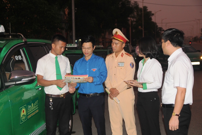 Web.ĐTN: Sáng ngày 3/12, Tỉnh đoàn Hà Tĩnh phối hợp Đoàn khối Doanh nghiệp tỉnh, Phòng Cảnh sát Giao thông Công an tỉnh tổ chức ra quân tuyên truyền pháp luật an toàn giao thông thông qua tờ rơi cảnh báo điểm đen tai nạn giao thông.