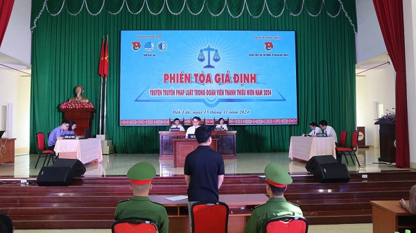 ĐTN: Ngày 15/11/2024, Ban Thường vụ Tỉnh đoàn phối hợp với Phân hiệu Trường Đại học Luật Hà Nội tại tỉnh Đắk Lắk cùng Thành đoàn Buôn Ma Thuột và các trường Đại học trên địa bàn tỉnh tổ chức “Phiên tòa giả định” và Hội thi “Rung Chuông vàng” hưởng ứng Ngày Pháp luật Nước Cộng hoà xã hội chủ nghĩa Việt Nam năm 2024.