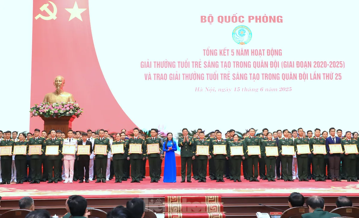 ĐTN: Ngày 15/6, tại Hà Nội, Bộ Quốc phòng tổ chức tổng kết 5 năm hoạt động Giải thưởng Tuổi trẻ sáng tạo trong quân đội, giai đoạn 2020 - 2025 và trao Giải thưởng Tuổi trẻ sáng tạo trong quân đội lần thứ 25.