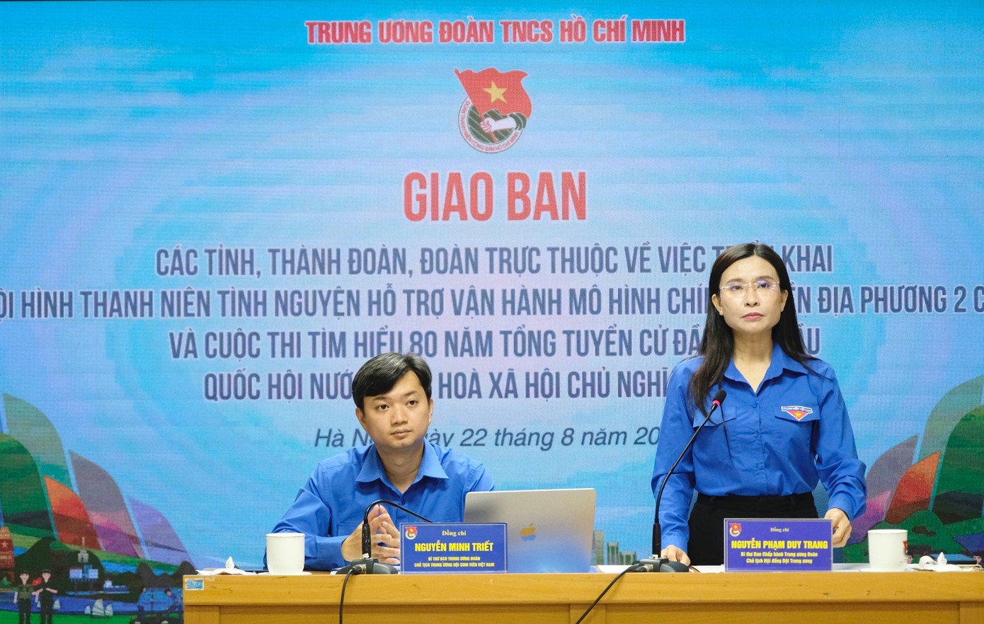 Sáng 22/8, Trung ương Đoàn tổ chức hội nghị giao ban các tỉnh, thành Đoàn, Đoàn trực thuộc về việc triển khai các đội hình thanh niên tình nguyện hỗ trợ vận hành mô hình chính quyền địa phương 2 cấp và Cuộc thi tìm hiểu 80 năm Tổng tuyển cử đầu tiên bầu Quốc hội Việt Nam.