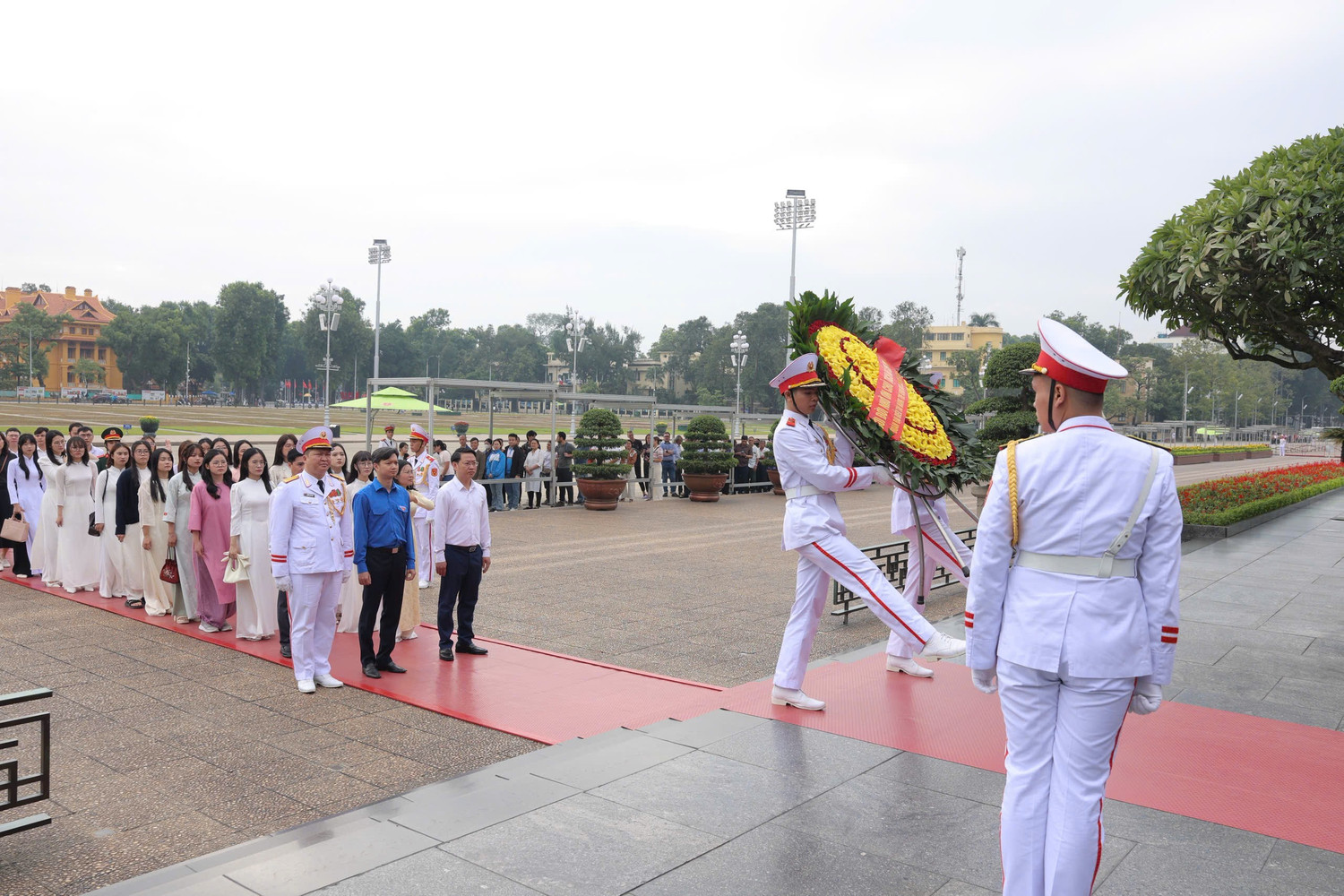 Sáng 29/10, anh Nguyễn Minh Triết - Bí thư Trung ương Đoàn, Chủ tịch T.Ư Hội SVVN dẫn đầu đoàn đại biểu nhận Giải thưởng KHCN Quả Cầu Vàng, nữ sinh Khoa học công nghệ vào Lăng viếng Bác.
