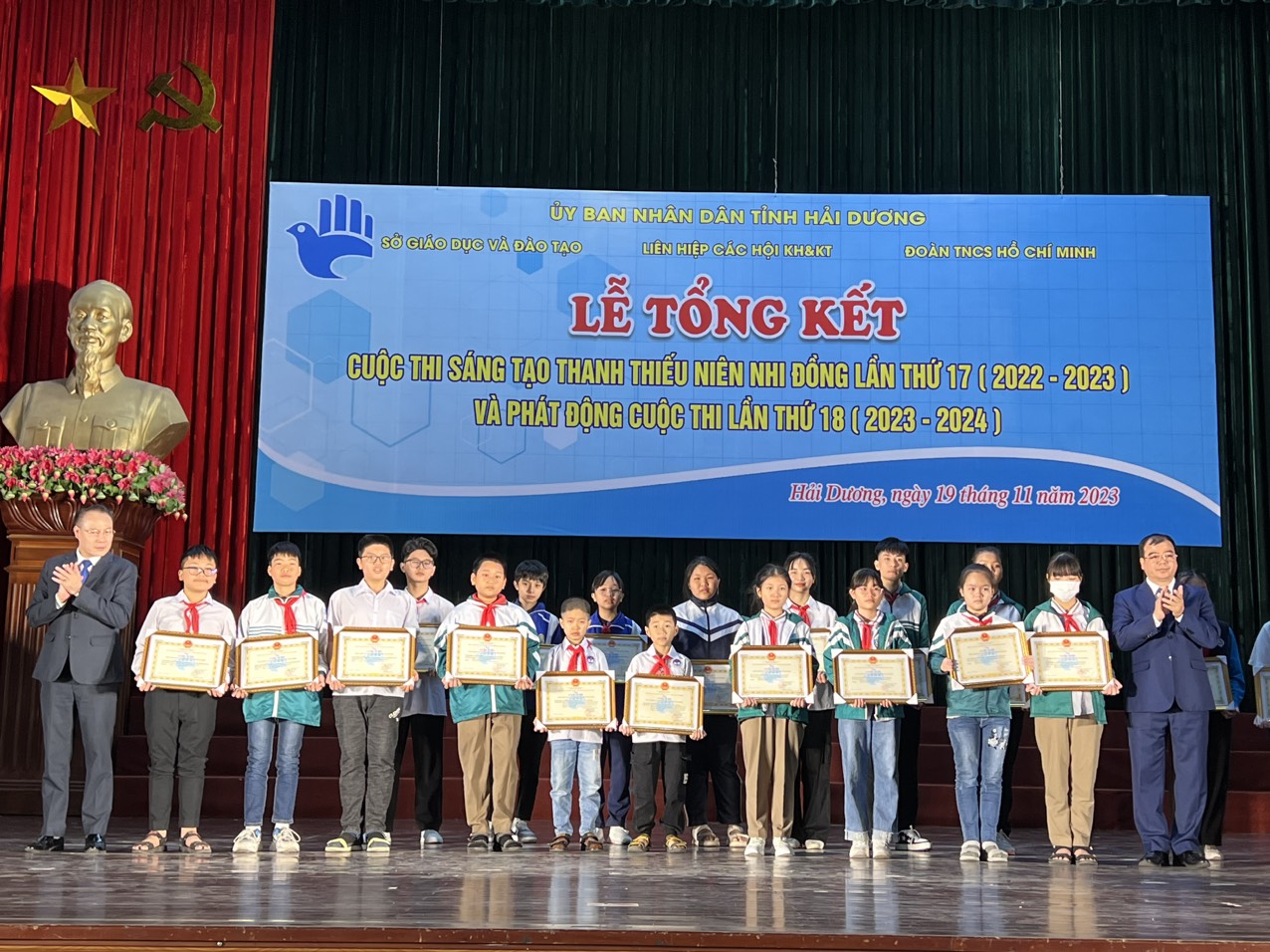 ĐTN: Sáng 19/11, tại Nhà văn hóa Lao động tỉnh đã diễn ra Lễ tổng kết Cuộc thi Sáng tạo thanh, thiếu niên nhi đồng tỉnh lần thứ 17 (2022-2023) và phát động cuộc thi lần thứ 18 (2023-2024).