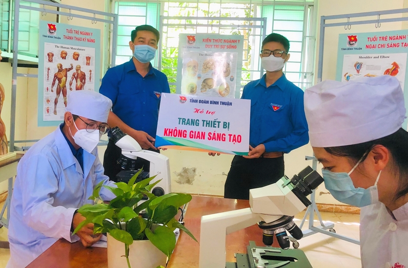 ĐTN: Sáng 23/11, đồng chí Thái Thành Bi - Phó Bí thư Tỉnh đoàn, Chủ tịch Hội đồng Đội tỉnh đã trao tặng các trang thiết bị, dụng cụ thí nghiệm, các mô hình để tổ chức "Lớp học không gian sáng tạo trẻ" cho Đoàn trường Cao đẳng Y tế Bình Thuận.