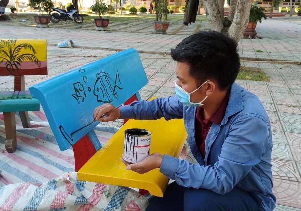 ĐTN: Hưởng ứng các hoạt động hướng tới Ngày hội toàn dân đưa trẻ đến trường, khai giảng năm học mới 2021 - 2022 và thực hiện các nội dung Chiến dịch thanh niên tình nguyện hè năm 2021, các đoàn viên thanh niên trường Tiểu học số 1 Quảng Châu, huyện Quảng Trạch đã triển khai công trình măng non “Ghế đá rực rỡ sắc màu”.