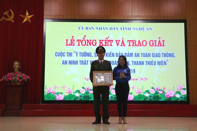 Web.ĐTN: Tại buổi tổng kết và trao giải cuộc thi "Ý tưởng, sáng kiến đảm bảo an toàn giao thông, an ninh trật tự trong đoàn viên, thanh thiếu niên” lần thứ nhất trên địa bàn tỉnh, Hội đồng chấm thi đã trao giải Nhất cho nhóm tác giả và giải Nhất tập thể cho Đoàn Thanh niên Công an tỉnh Nghệ An.