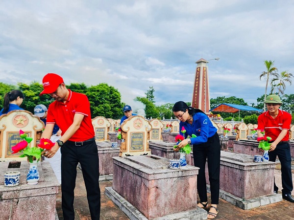 Tuổi trẻ Hà Tĩnh dâng hơn 7.500 đóa sen hồng lên các phần mộ liệt sỹ