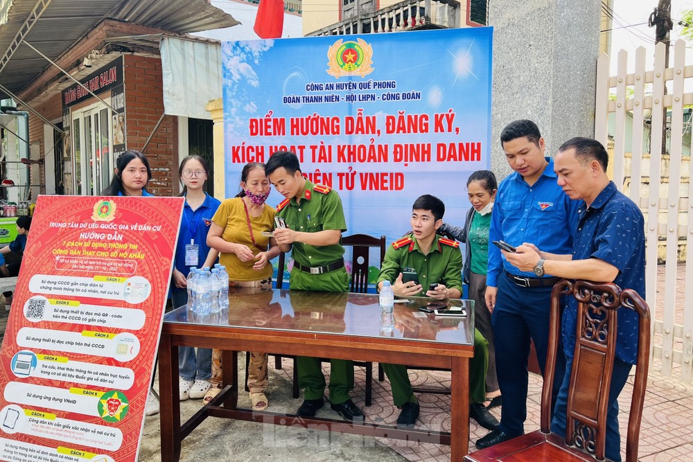 ĐTN: Sau khi đưa con đến điểm thi, nhiều phụ huynh tại điểm thi trường THPT Quế Phong, huyện Quế Phong, Nghệ An đã được lực lượng Công an, đoàn viên thanh niên hỗ trợ cài đặt và kích hoạt tài khoản định danh điện tử VNeID.
