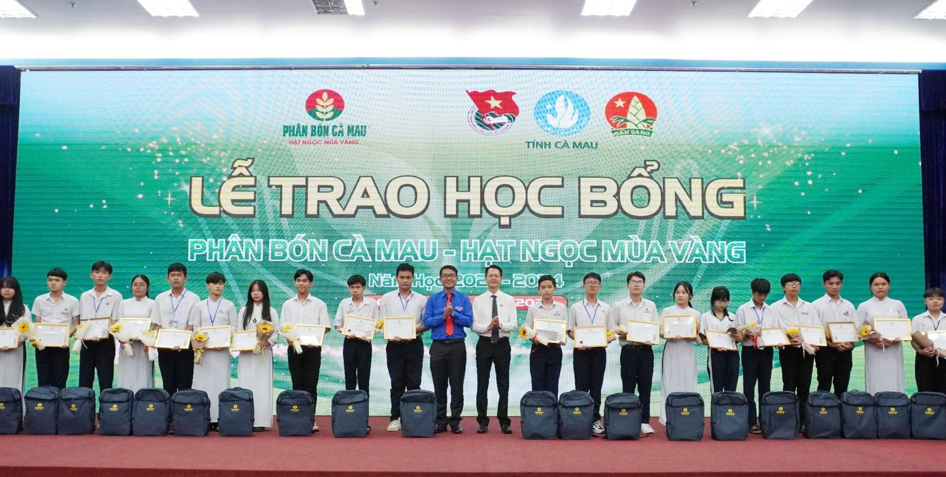 ĐTN: Chiều ngày 18/10, Ban Thường vụ Tỉnh đoàn Cà Mau phối hợp với Công ty Cổ phần Phân bón Dầu khí Cà Mau tổ chức chương trình trao học bổng “Phân bón Cà Mau - Hạt ngọc mùa vàng” trao 200 suất học bổng mỗi suất trị giá 2 triệu đồng, gồm tiền mặt và quà cho các em học sinh khối THPT trong tỉnh.