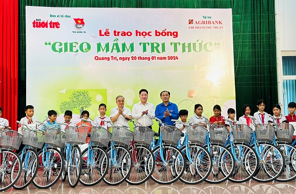 ĐTN: Sáng ngày 20/01, Ban Thường vụ Tỉnh Đoàn phối hợp với Báo Tuổi trẻ và Ngân hàng Nông nghiệp và Phát triển nông thôn Việt Nam chi nhánh Phú Nhuận tổ chức Lễ trao học bổng “Gieo mầm tri thức” cho 200 em học sinh có hoàn cảnh khó khăn vươn lên học giỏi tại thị xã Quảng Trị và huyện Hải Lăng.