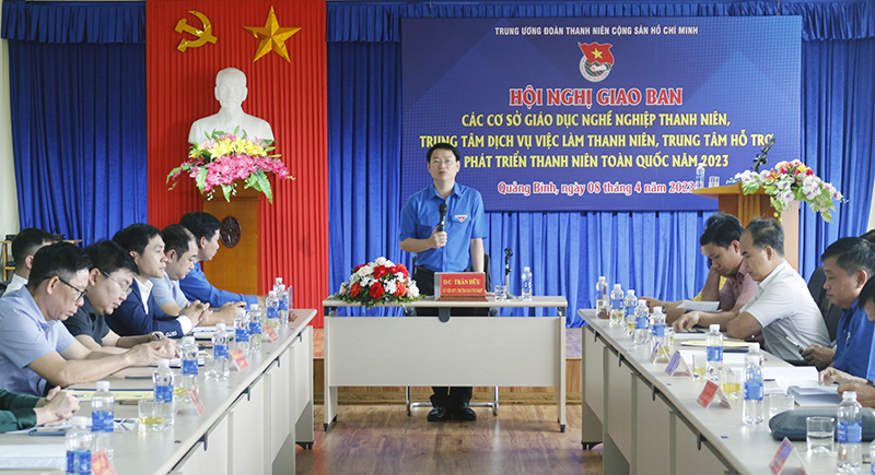 Chiều 8/4, tại Trung tâm Dịch vụ việc làm thanh niên (TN) tỉnh Quảng Bình, Trung ương Đoàn TNCS Hồ Chí Minh tổ chức hội nghị giao ban các cơ sở giáo dục nghề nghiệp, trung tâm dịch vụ việc làm, trung tâm hỗ trợ TN