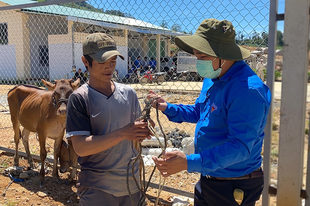 Web.ĐTN: Sáng 25/8, Tỉnh đoàn Quảng Ngãi tiếp tục bàn giao đất cho 8 hộ còn lại trong vùng dự án. Đồng thời, trao 15 con bò, 750 cây bưởi giống cho 15 hộ đã ổn định cuộc sống tại làng và chuẩn bị sẵn sàng các điều kiện nuôi trồng.