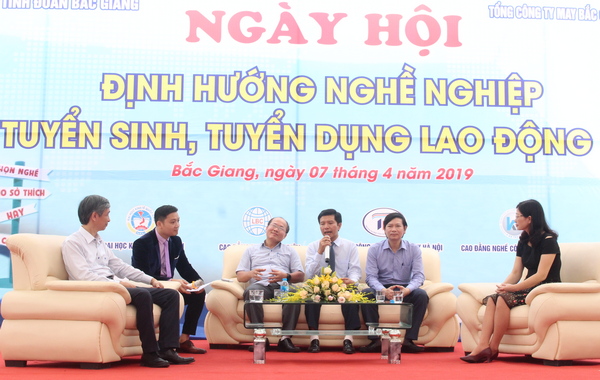 Web.ĐTN: Ngày 7/4, tại xã Nghĩa Hòa (huyện Lạng Giang), Tỉnh đoàn Bắc Giang phối hợp với Tổng Công ty May Bắc Giang LGG tổ chức Ngày hội định hướng nghề nghiệp, tư vấn tuyển sinh và tuyển dụng lao động năm 2019 với sự tham dự hơn 1.300 học sinh đến từ các trường THPT trên địa bàn tỉnh.