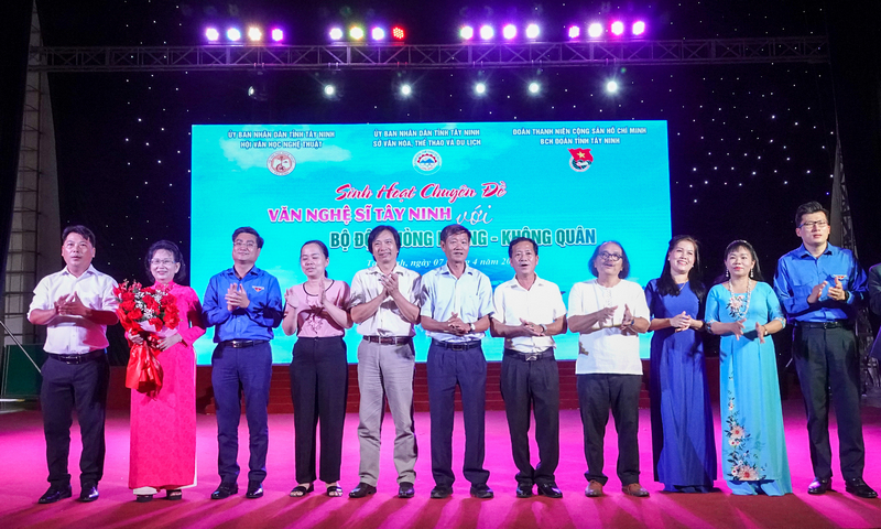 ĐTN: Sáng ngày 07/4, Hội Văn hóa Nghệ thuật tỉnh Tây Ninh phối hợp với Tỉnh đoàn Tây Ninh tổ chức buổi Sinh hoạt chuyên đề Văn nghệ sĩ Tây Ninh với Bội đội Phòng không - Không quân đến các đoàn viên thanh niên trong toàn tỉnh.