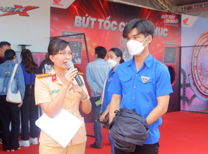 ĐTN: Ngày 19/9, Trung tâm Hoạt động Thanh thiếu nhi tỉnh Bình Phước đã phối hợp với công ty Honda Bình Phúc - chi nhánh thành phố Đồng Xoài và trường THPT Nguyễn Du tổ chức Ngày hội “Thanh niên với văn hóa giao thông” tại trường THPT Nguyễn Du (thành phố Đồng Xoài).