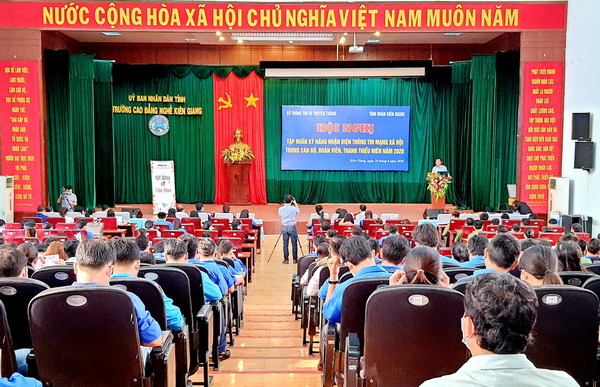 Web.ĐTN: Ban Thường vụ Tỉnh đoàn phối hợp Sở Thông tin và Truyền thông tổ chức hội nghị tập huấn Kỹ năng sử dụng mạng xã hội trong thời đại 4.0 cho gần 350 đại biểu là báo cáo viên Tỉnh đoàn khóa X, cán bộ đoàn cấp huyện và cơ sở, thành viên câu lạc bộ Lý luận trẻ tỉnh Kiên Giang.