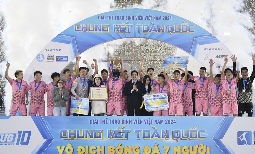 ĐTN: Chiều 15/12, tại Hà Nội, trận Chung kết Giải Thể thao Sinh viên Việt Nam (VUG) 2024 môn bóng đá 7 người đã khép lại đầy kịch tính. Học viện Công nghệ Bưu chính Viễn thông đã xuất sắc vượt qua trường ĐH Sư phạm Kỹ thuật TP. Hồ Chí Minh trong loạt sút luân lưu để giành ngôi vô địch, sau khi hòa 1 - 1 ở hai hiệp chính.