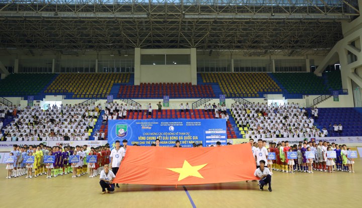 Web.ĐTN: Sáng nay 7/8, tại Hà Nội, Quỹ Bảo trợ trẻ em Việt Nam, Bộ Giáo dục và Đào tạo, Báo Nhi Đồng phối hợp các đơn vị liên quan tổ chức Lễ khai mạc Vòng chung kết Giải bóng đá quốc gia dành cho trẻ em có hoàn cảnh đặc biệt năm 2019.