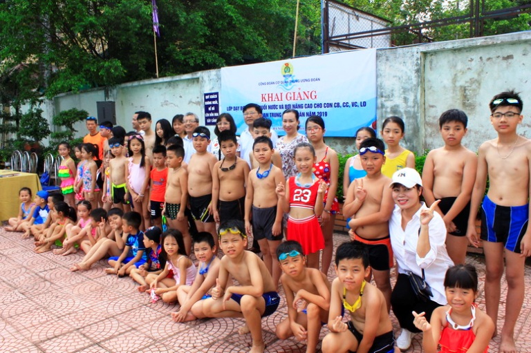 Web.ĐTN: Sáng 03/7, Công đoàn Cơ quan Trung ương Đoàn phối hợp với Trung tâm Thanh thiếu niên Trung ương tổ chức khai giảng Lớp dạy bơi chống đuối nước cho con cán bộ, công chức, viên chức và người lao động cơ quan Trung ương Đoàn.