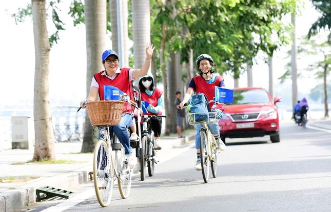 Học sinh, thầy cô tại Hà Nội đạp xe quanh Hồ Tây hưởng ứng bảo vệ môi trường