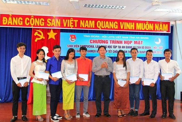 Web.ĐTN: Ngày 10/4, Tỉnh Đoàn, Ban Thư ký Ủy ban Hội Liên hiệp thanh niên Việt Nam tỉnh, Hội đồng Đội tỉnh tổ chức Chương trình Họp mặt sinh viên Campuchia, Lào đang học tập tại An Giang và cán bộ Đoàn - Hội - Đội người dân tộc Khmer nhân dịp Tết Chôl Chnăm Thmây (Campuchia) và Bun Pi Mây (Lào) năm 2019.
