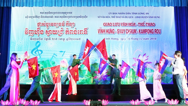 Web.ĐTN: Sáng 28/12, tại huyện Vĩnh Hưng đã diễn ra chương trình Giao lưu văn hóa, thể thao với hai huyện: SvayChrum và KampongRou, tỉnh SvayRieng, Vương quốc Campuchia và huyện Vĩnh Hưng, tỉnh Long An.