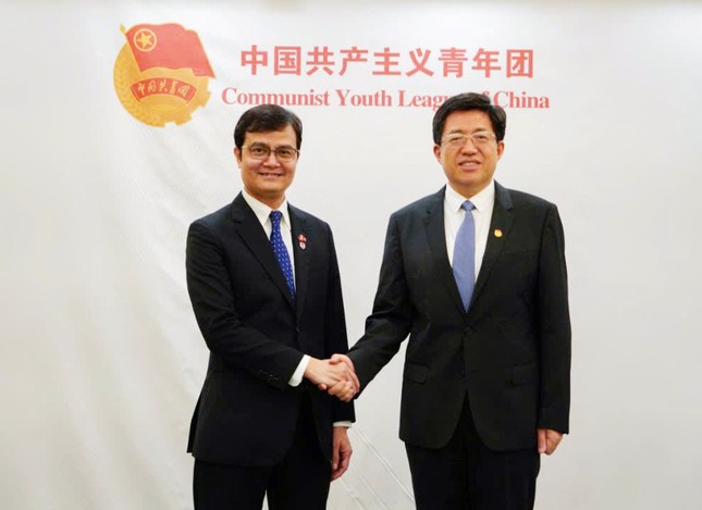 ĐTN: Chiều 19.8, nhân dịp tháp tùng Tổng Bí thư, Chủ tịch nước Tô Lâm thăm cấp nhà nước tới Trung Quốc, đồng chí Bùi Quang Huy, Ủy viên dự khuyết T.Ư Đảng, Bí thư thứ nhất T.Ư Đoàn TNCS Hồ Chí Minh, đã có buổi làm việc với đồng chí A Đông, Bí thư thứ nhất T.Ư Đoàn TNCS Trung Quốc.