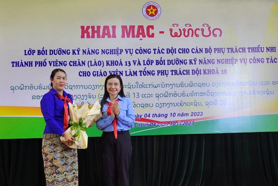ĐTN: Thực hiện chương trình hợp tác giữa Thành đoàn Hà Nội và Thành đoàn Viêng Chăn – Lào, sáng 4/10, trường Lê Duẩn tổ chức lễ khai mạc lớp bồi dưỡng Phụ trách thiếu nhi Thành Đoàn Viêng Chăn - Lào (khóa 13) năm 2023 và lớp bồi dưỡng giáo viên làm Tổng phụ trách Đội khoá 28.