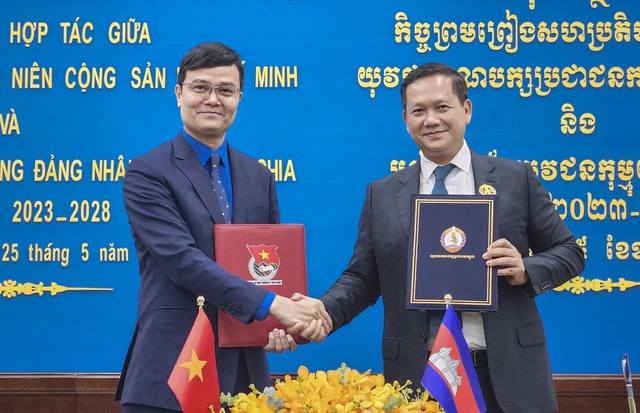 Tiếp tục chương trình thăm và làm việc tại Campuchia, chiều 25.5, Uỷ viên Dự khuyết BCH T.Ư Đảng, Bí thư thứ nhất T.Ư Đoàn TNCS Hồ Chí Minh Bùi Quang Huy và Đại tướng Hun Manet, Phó tổng Tư lệnh kiêm Tư lệnh Lục quân Quân đội hoàng gia Campuchia, Chủ tịch Ban Thanh niên Đảng Nhân dân Campuchia, đã ký thoả thuận hợp tác giai đoạn 2023 - 2028.