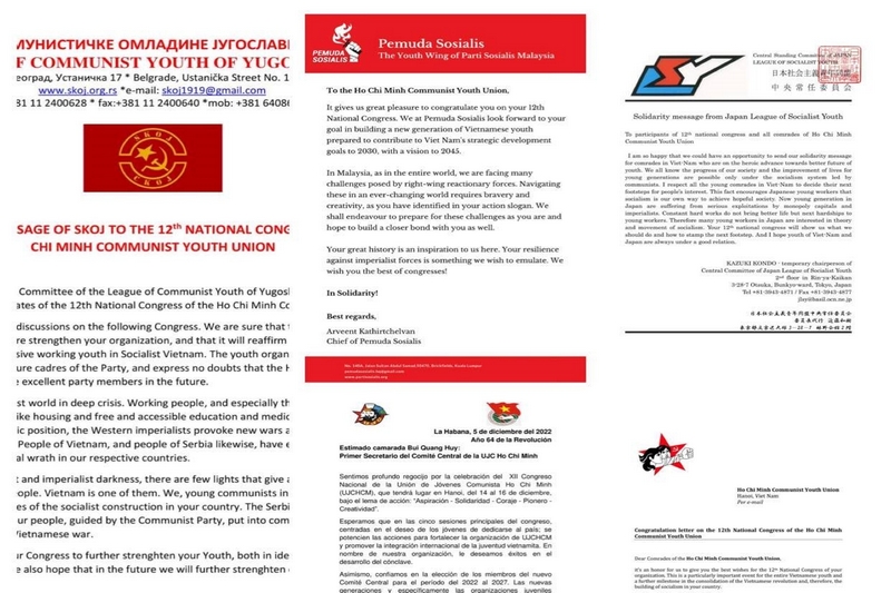 Bạn bè Quốc tế gửi thư chúc mừng Đại hội Đoàn XII