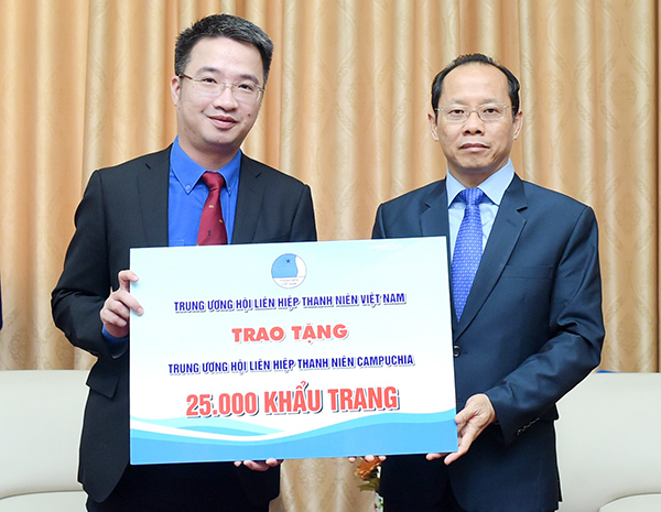 Hội LHTN Việt Nam tặng 25.000 khẩu trang y tế cho Hội Liên hiệp Thanh niên Campuchia