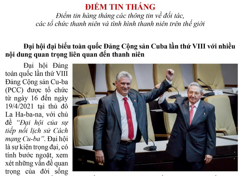 ĐTN: Điểm tin hàng tháng các thông tin về đối tác, các tổ chức thanh niên và tình hình thanh niên trên thế giới.