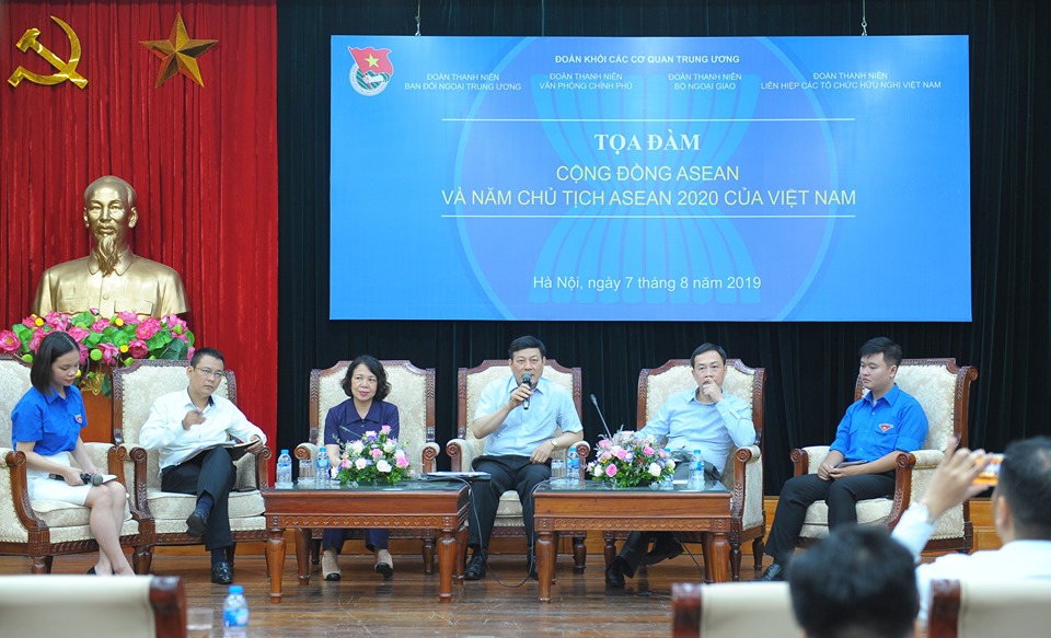 Web.ĐTN: Kỷ niệm 52 năm ngày thành lập Hiệp hội các Quốc gia Đông Nam Á - ASEAN (8/8/1967-8/8/2019) và 24 năm Việt Nam gia nhập ASEAN, chiều 7/8, tại Hà Nội, Đoàn Khối các cơ quan Trung ương tổ chức Tọa đàm có chủ đề “Cộng đồng ASEAN và năm Chủ tịch ASEAN 2020 của Việt Nam”.