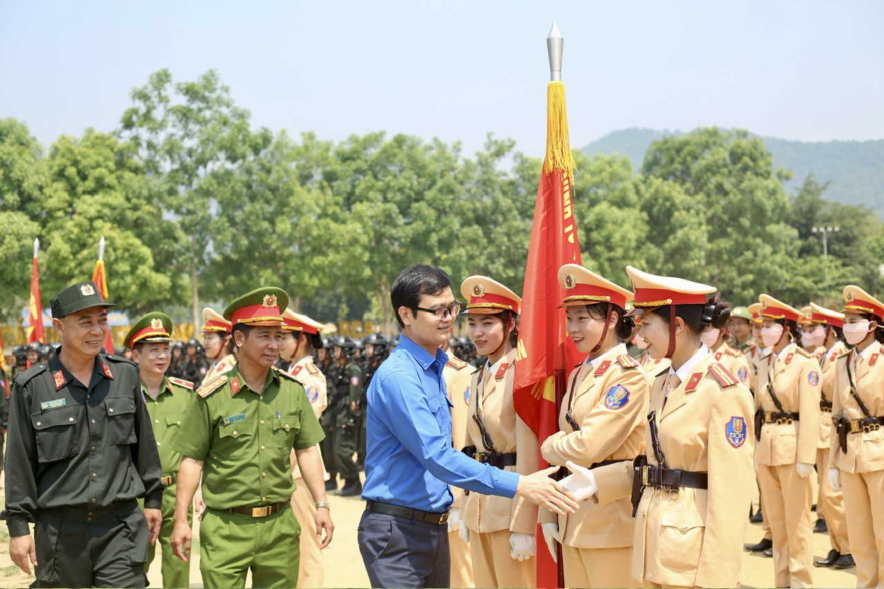 ĐTN: Ngày 27/4, đoàn công tác T.Ư Đoàn do Bí thư thứ nhất T.Ư Đoàn Bùi Quang Huy dẫn đầu đã đến Trung đoàn Cảnh sát cơ động Tây Bắc thăm, tặng quà đoàn viên, thanh niên lực lượng diễu binh thuộc Bộ Công an tham gia phục vụ cho lễ diễu binh, diễu hành trong đại Lễ kỷ niệm 70 năm Chiến thắng Điện Biên Phủ.
