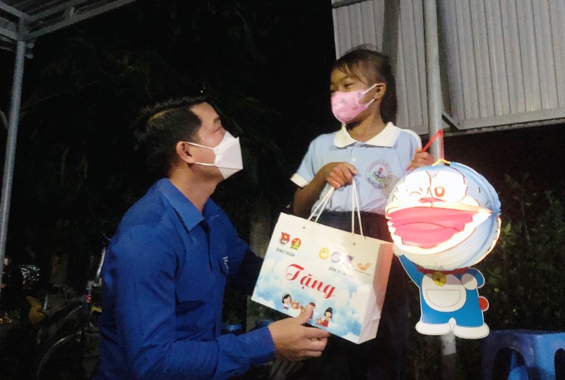ĐTN: Chương trình “Lồng đèn lan tỏa yêu thương” được Tỉnh đoàn Bình Thuận thực hiện kéo dài từ ngày 18 đến ngày 20/9/2021, đã trao tặng 3.250 túi an sinh gồm lồng đèn, nến, bánh trung thu, sữa, bánh kẹo…với tổng giá trị 200 triệu đồng cho các em thiếu nhi có hoàn cảnh khó khăn, mồ côi.