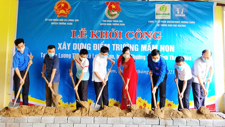 ĐTN: Sáng ngày 07/5, Ban Thường vụ Tỉnh đoàn - Hội đồng Đội tỉnh Thanh Hóa phối hợp với Công ty cổ phần Greenfoods Thường Xuân, Hệ Thống giáo dục HOCMAI tổ chức khởi công xây dựng điểm trường mầm non tại thôn Lương Thịnh, xã Lương Sơn, huyện Thường Xuân.