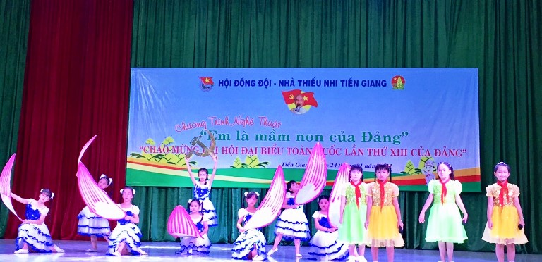 ĐTN: Tối 24/01, Hội đồng Đội, Nhà Thiếu nhi tỉnh Tiền Giang tổ chức Chương trình nghệ thuật “Em là mầm non của Đảng”.